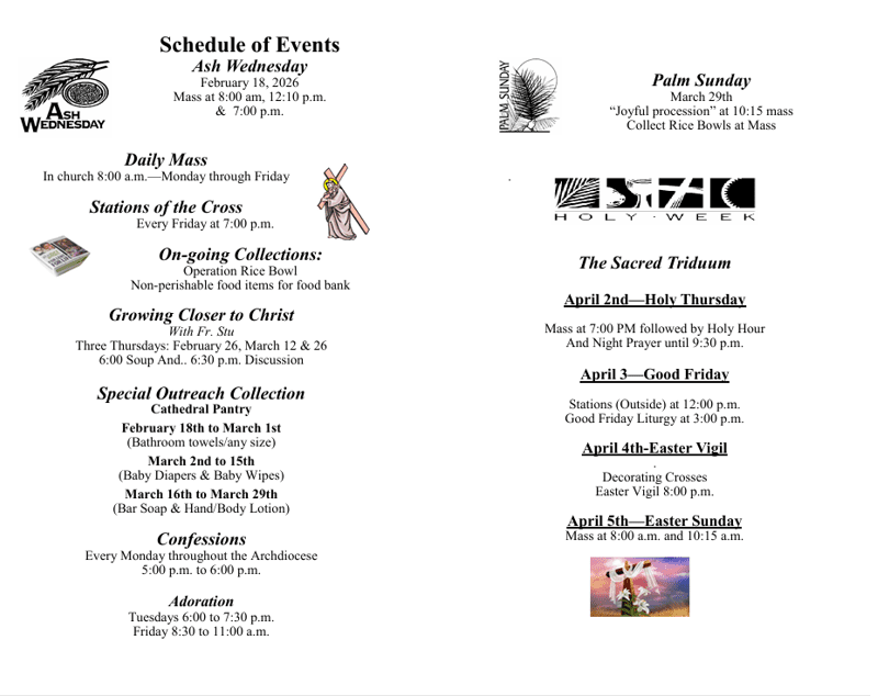 Schedule of Events: Ash Wednesday to Easter