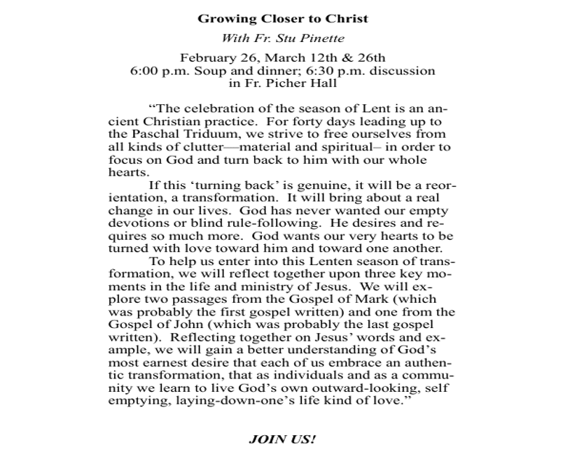 Discussion Series with Fr. Stu & Soup and Dinner