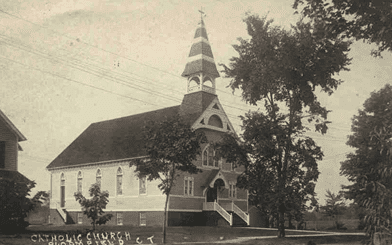 Finally, in 1947, Sacred Heart mission became a parish with Father Harold F. Daly as first resident pastor. Ground was broken on May 13, 1962, for a new church and school, staffed by the Sisters of Charity from Baltic. Sacred Heart Church and School was dedicated on April 27, 1963, by Archbishop Henry J. O’Brien. Unfortunately, the school was forced to close in June 1988, and the building was converted into a Family Life Center.