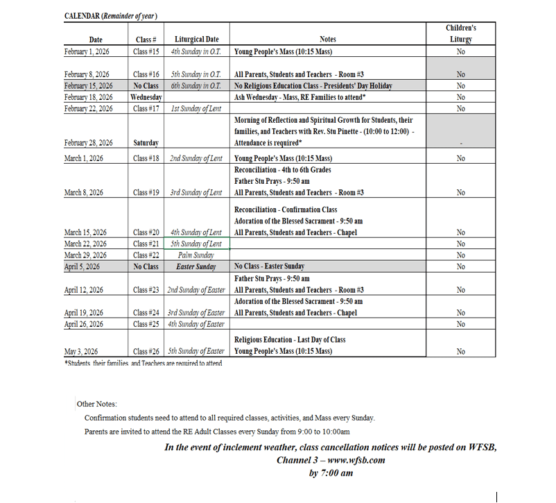 Religious Education (CCD) Classes & Children’s Liturgy
